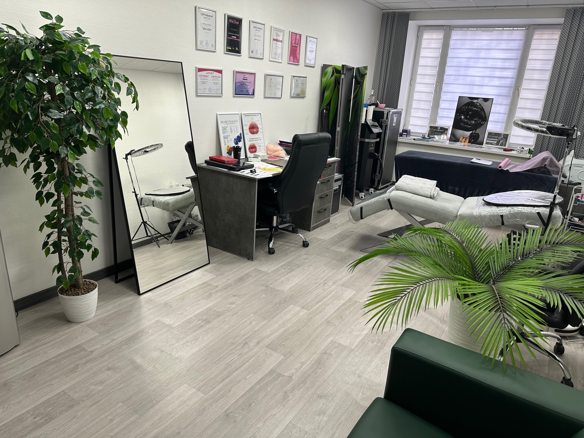 Также к услугам наших посетителей пилинг, биоревитализация, мезотерапия, ботокс, перманентный макияж. Принимает специалист по мезотерапии кожи головы.